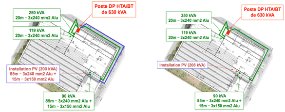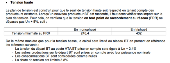 - Pour une explication détaillée des contraintes en tension et en courant en elles-mêmes, voir l'article Principes physiques de l'intégration du PV en basse tension