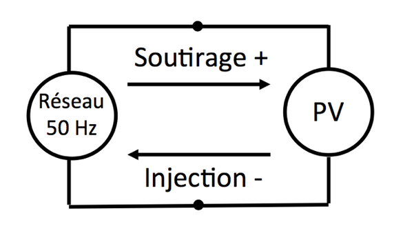 Avant de détailler les 4 configurations rencontrées, il est nécessaire de fixer une convention de signes. Dans cet article, c’est la convention dite « consommateurs » qui est utilisée pour laquelle les puissances soutirées sont positives et les puissances injectées négatives, (voir Figure 7).