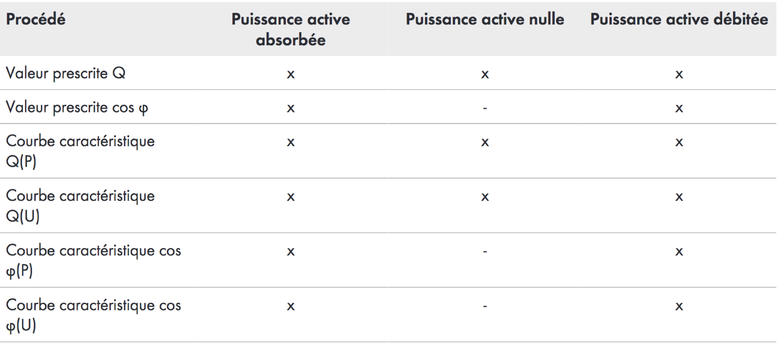 Afin de s’adapter à la plupart des configurations rencontrées dans le monde, les principaux fabricants d’onduleurs pour installations photovoltaïques proposent désormais des produits disposant d’un contrôle-commande permettant d’assurer la gestion de la puissance réactive selon de nombreux modes (voir Figure 9).